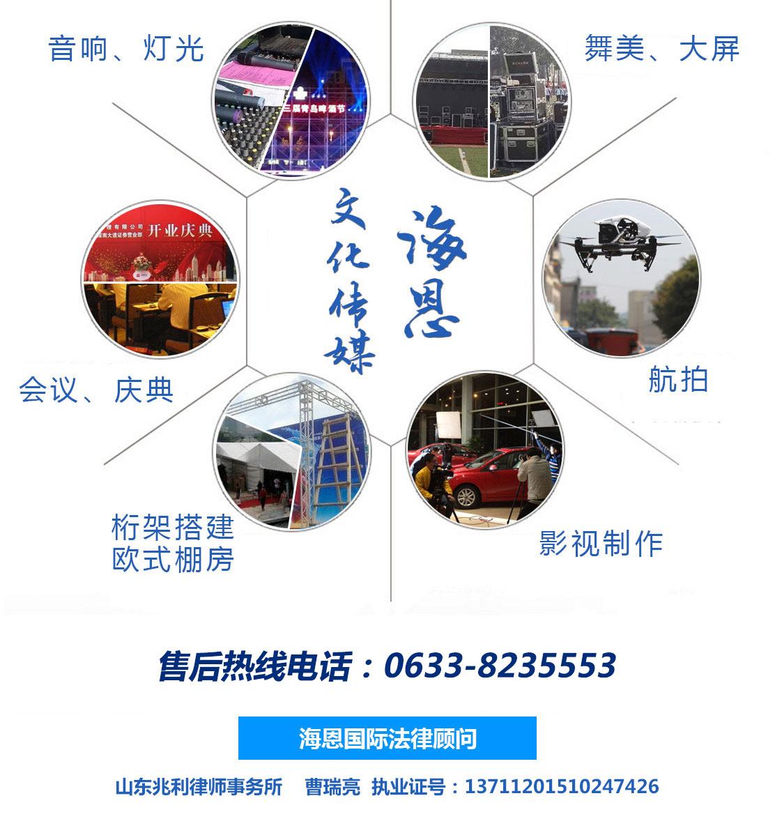 日照海恩國際展覽股份有限公司主要經(jīng)營:為文化藝術交流提供服務,攝影攝像服務,廣告圖文設計,舞臺設計,文化藝術交流策劃,舞臺藝術造型策劃,企業(yè)營銷策劃,商務信息咨詢,會議服務,展覽展示服務,禮儀慶典服務,廣告設計制作等產(chǎn)品。公司尊崇“踏實、拼搏、責任”的企業(yè)精神,并以誠信、共贏、經(jīng)營理念,創(chuàng)造良好的企業(yè)環(huán)境,以全新的管理模式,完善的技術,周到的服務,我們始終堅...